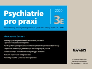 www.psychiatriepropraxi.cz e43 PŘEHLEDOVÉ ČLÁNKY Panická porucha – příznaky a diagnostika PSYCHIATRIE PRO PRAXI Panická porucha – příznaky a diagnostika doc. MUDr. Dana Končelíková, Ph.D. Klinika psychiatrie FN Olomouc a Lékařská fakulta UP, Olomouc Panická porucha se řadí do skupiny úzkostných poruch a je charakterizovaná přítomností panických atak a anticipační úzkostí. V průběhu živo- ta prožije alespoň jednu panickou ataku asi čtvrtina populace. Pro panické ataky je typická jejich náhlost a omezená délka trvání. Při panické atace postižený člověk prožívá masivní úzkost, která je doprovázena obavami a tělesnými příznaky. Intenzita příznaků je pro pacienty natolik děsivá, že je vede do ambulancí lékařů, často akutně. Do současné chvíle byla vytvořena řada účinných jak farmakologických, tak nefarmako- logických léčebných přístupů. Jejich účinnost je však závislá od správné indikace a tedy správné diagnostiky pacientů. Klíčová slova: panická ataka, respirační alkalóza, vegetativní příznaky, anticipační úzkost, diferenciální diagnostika, terapie. Panic disorder – symptoms and diagnostics Panic disorder belongs to the group of anxiety disorders and it is characterized by the presence of panic attacks and anticipatory anxiety. At least one quater of population experience at least one panic attack in their life. Panic attacks are characterized by their suddenness and limited duration. During the panic attack, the affected person experiences massive anxiety, which is accompanied by fears and physical symptoms. The symptoms could be so intense that the patients offten go straight to Emergency without consultation with primary care doctor. A number of effective pharmacological and non-pharmacological treatment approaches have been developed. However, their efficacy dependents on the correct indication and hence correct diagnosis. Key words: panic attack, respiratory alkalosis, vegetative symptoms, anticipatory anxiety, differential diagnosis, therapy. KORESPONDENČNÍ ADRESA AUTORA: doc. MUDr. Dana Končelíková, Ph.D., dana.koncelikova@fnol.cz Klinika psychiatrie FNOlomouc a Lékařská fakulta UP, I. P. Pavlova 6, 779 00 Olomouc Převzato z: Med. praxi 2020; 17(2): 104–108 Článek přijat redakcí: 28. 10. 2019 Článek přijat k publikaci: 15. 12. 2019
